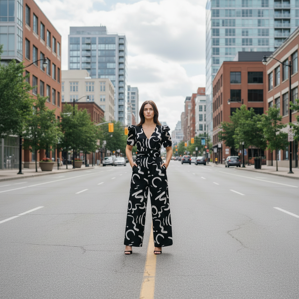 Abstract Print Women's Jumpsuit | Elegant Wide Leg Design